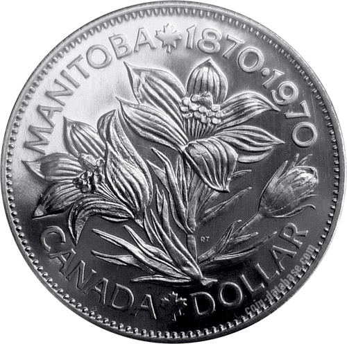 1 dollar - Manitoba's centennialSeries: Canada - Loonies and commemorative circulation 1 dollar coins Raymond Taylor's prairie crocus design commemorates the centennial of Manitoba's accession to Canada.
