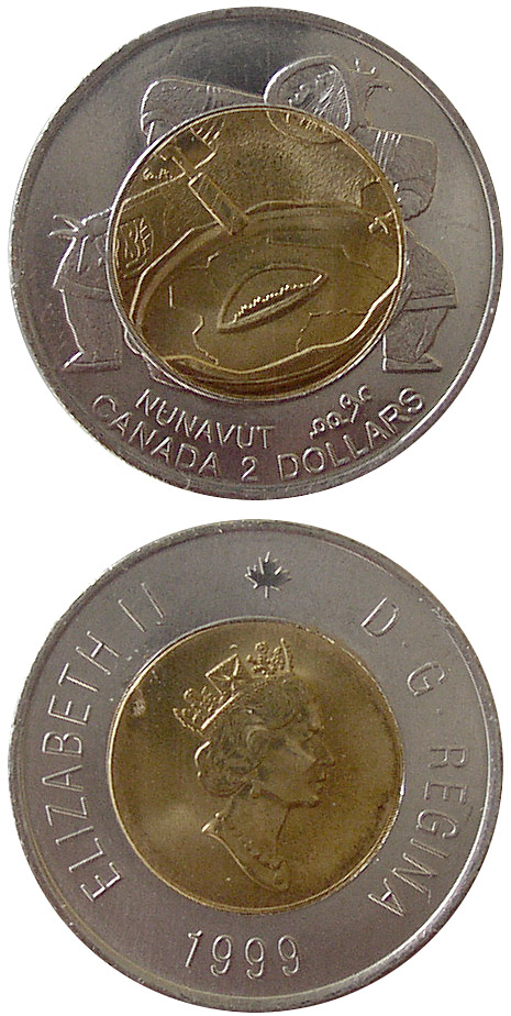 2 dollars - The founding of NunavutSeries: Canada - Commemorative TooniesImage: Copyright © Collector Coin Database