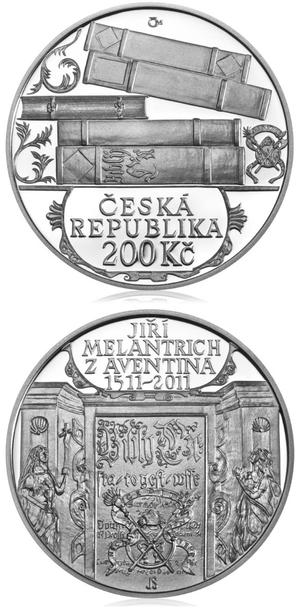 Jiří Melantrich of Aventinum (born Jiřík Černý) was a prominent 16th century printer and publisher. To mark the 500th anniversary of his birth, the Czech National Bank is putting into circulation a CZK 200 commemorative silver coin on 15 June 2011.