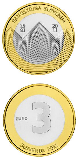 Over the last 20 years, Slovenia has undertaken a challenging journey to build a new political and economic system, and establish itself on the world stage. To commemorate this anniversary, Slovenia is issuing collector coins depicting three summits representing Mount Triglav, the most distinctive symbol of Slovenia.