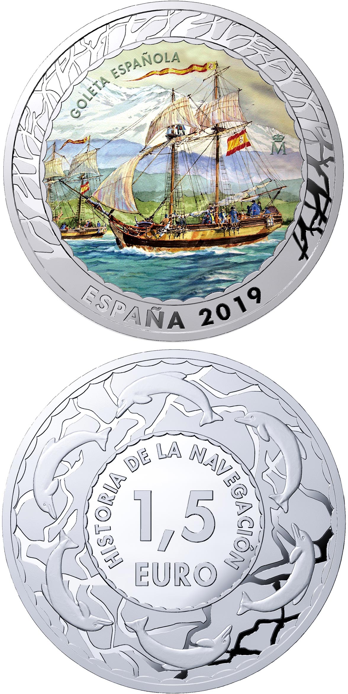 The Sutil and the Mexicana, depicted on the coin, were built in San Blas in 1792. Under the command of Dionisio Alcalá Galiano and Cayetano Valdés respectively, they set sail from Acapulco with six cannons apiece on a reconnaissance voyage to the Straits of Juan de Fuca and Georgia, in the present-day province of Vancouver. They arrived there before the Vancouver itself, which was on the same mission. Joining forces with the Vancouver expedition, they sailed the waters surrounding the island.