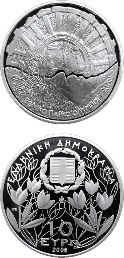 10 euro - 50 years National park Olympos - Excavations at Dion OlympusSeries: Greece - Silver 10 euro coins