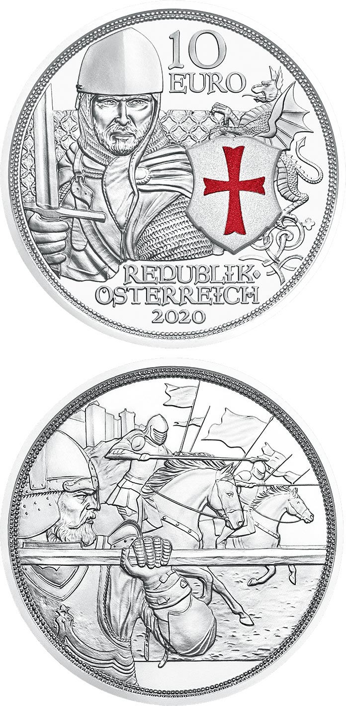 Founded during the Crusades, the Order of the Knights Templar unified the monastic life with the ideals of knighthood. Bound by poverty, chastity and obedience, the Templars lived a life of godliness and were forbidden to partake of worldly temptations, but were also considered an elite military troop. Uncompromisingly brave, they epitomised the knightly concept of ‘courage’, to which the third coin in the swashbuckling five-coin Knights’ Tales series is dedicated.