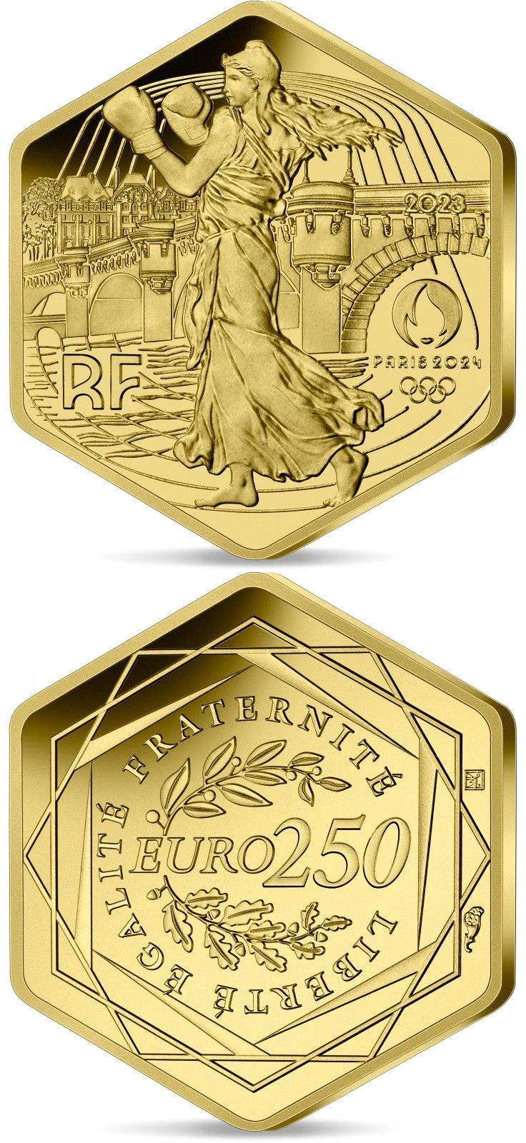 After depicting Marianne (2021) and the Genius (2022), the obverse of these coins shows the Sower, practicing pugilism. In the background we can see the Pont Neuf, considered as the oldest stone bridge in Paris. It is located few meters away from Monnaie de Paris.