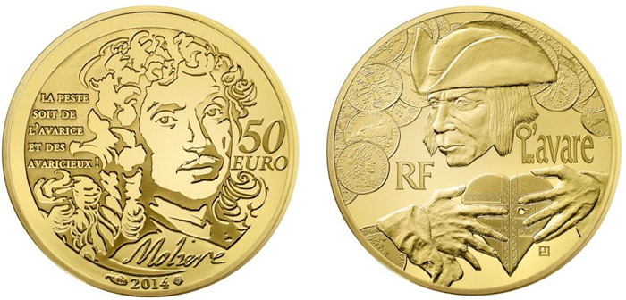 10 euro - The MiserSeries: France - Legendary Characters from French Literature Artist : Monnaie de Paris Mintage : 500 Metal : Gold 920/1000 Denomination : 1/4 oz Diameter : 22 mm Weight : 8,45 g Proof : Proof Face value : 50 € Vintage : 2014
