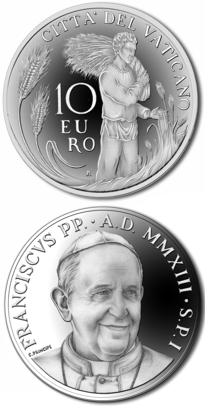 The various Christian communities all over the world gather each year on the Fourth Sunday of Easter united in prayer to ask from God the gift of holy vocations and to propose once again, for the reflection of all, the urgent need to respond to the divine call. The theme for the 50th World Day of Prayer for Vocations (2013), “Vocations as a sign of hope founded in faith”, fits well in the context of the reflections taking place during the Year of Faith, which concludes on 24 November 2013, and during the 50th anniversary of the opening of the Second Vatican Council. In order to carry out her mission of evangelization, the Church has constant need of new workers and it is a responsibility of priests to accompany young people on life’s often tortuous and difficult path to recognize Christ, the Way, the Truth and the Life, telling them with Gospel courage how beautiful it is to serve God and the Christian community. Benedict XVI has expressed his hope that young people, who are presented with so many superfi cial and ephemeral options, will be able to cultivate a desire for what is truly worthy, for lofty objectives, radical choices, and service to others in imitation of Jesus. He writes: “Dear young people, do not be afraid to follow him and to walk the demanding and courageous paths of charity and generous commitment! In that way you will be happy to serve, you will be witnesses of a joy that the world cannot give, you will be living l ames of an infi nite and eternal love”. On the ten euro silver coin there is a symbolic representation of the passage in the Gospel of Matthew: “Then he said to his disciples, The harvest is abundant but the laborers are few; so ask the master of the harvest to send out laborers for his harvest”. (Mt 9:37-38).