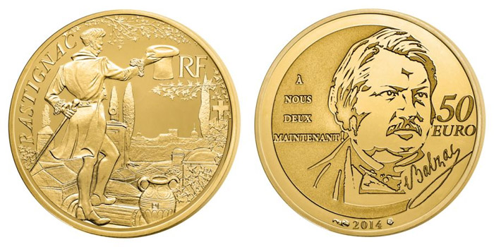 10 euro - RastignacSeries: France - Legendary Characters from French Literature Artist : Monnaie de Paris Mintage : 500 Metal : Gold 920/1000 Denomination : 1/4 oz Diameter : 22 mm Weight : 8,45 g Proof : Proof Face value : 50 € Vintage : 2014
