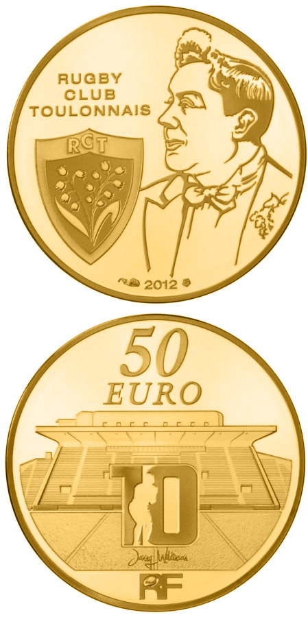 For several years, Monnaie de Paris has been paying tribute to great sports teams. This year, Rugb y Club Toulonnais is in the spotlight. The emblematic club has won the French Championship three times (1931, 1987, 1992). The club's emblem, which comprises a lily-of-the-valley, is depicted on the obverse. It is accompanied by the club’s famous sponsor, the singer Félix Mayol, who gave his name to the club’s stadium. On the reverse, a player in full action appears in front of the Mayol Stadium.
