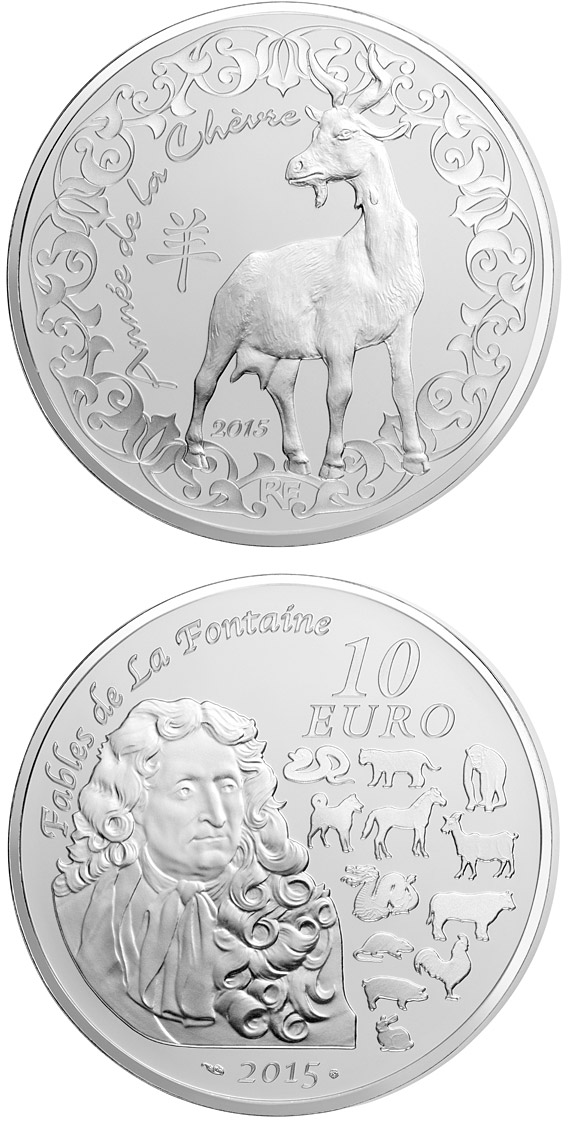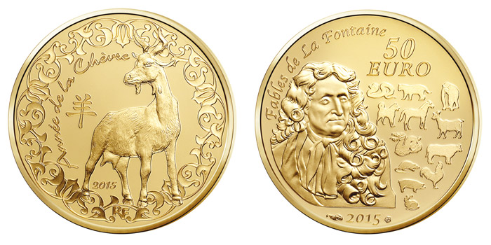 10 euro - Year of the Goat Mintage : 500 Metal : Gold Denomination : Gold 920/1000 Diameter : 22 mm Weight : 8,45 g Proof : Proof Face value : 50 €