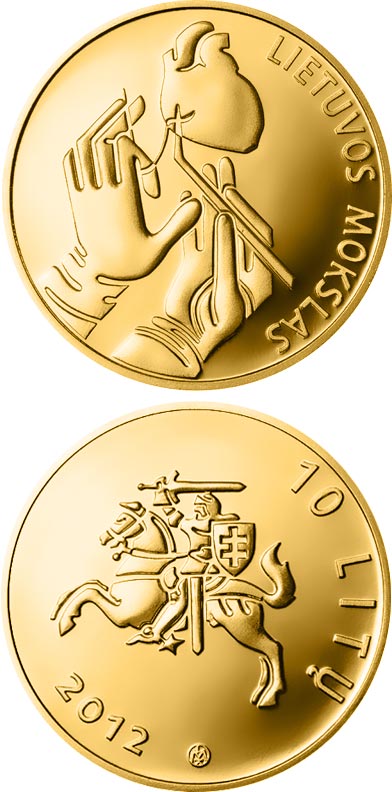 The obverse of the coin features a stylised coat of arms of the Republic of Lithuania, which is surrounded by the inscriptions 10 LITŲ (10 litas) and 2012, as well as the mintmark of the Lithuanian Mint. The reverse of the coin artistically depicts the surgeon’s hands and a stylised heart created according to the motives of the medal by Stanislovas Kuzma “Vilnius University Cardiac and Vascular Laboratory and Clinics in 1962–1982”. The inscription “Lithuanian Science” runs in a semi-circle.