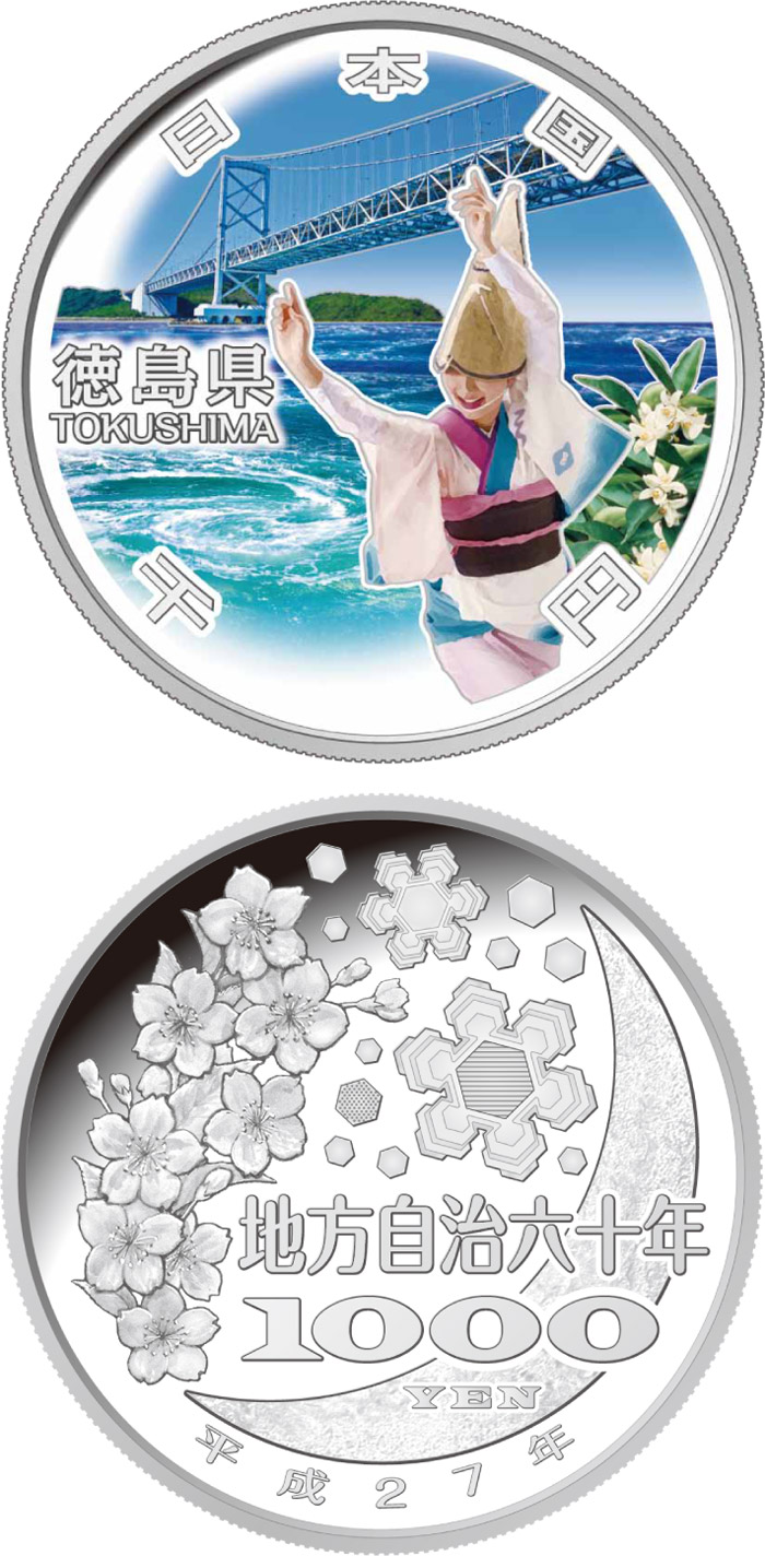 Image of 1000 yen coin - Tokushima  | Japan 2015.  The Silver coin is of Proof quality.