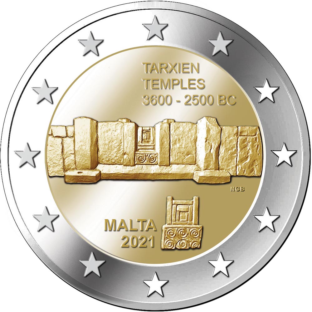 These structures first came to light in 1913 and were extensively excavated between 1915 and 1919. This temple was listed by UNESCO as a World Heritage Site. These coins will be issued in rolls and individually in cards, and will also be included in the 2021 Malta Year Set.