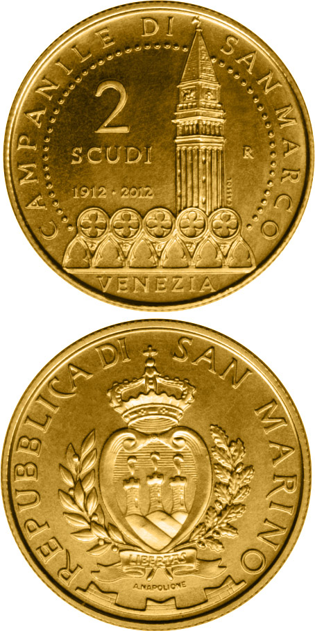 2 scudi - The 100th Anniversary of the New Tower of Basilica of Saint MarkSeries: San Marino - Gold 2 scudi coins