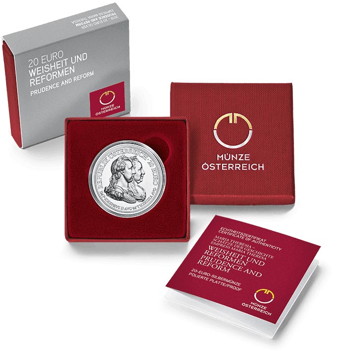 Rounding off the Empress Maria Theresa series, Prudence and Reform, like all the coins in the series, is minted in extra-bold relief and has been inspired by medals issued during the 40-year reign of the Empress.