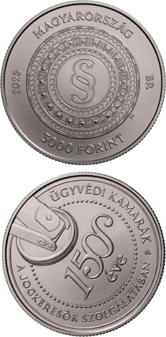 To commemorate the anniversary year, the Bank is issuing a silver collector coin with a face value of 20,000 forints and a non-ferrous metal version with a face value of 3,000 forints named ‘150 éve alakultak meg a területi ügyvédi kamarák’ (‘150th Anniversary of the Regional Lawyers Associations’). The primary role of collector coins is to offer education and to raise awareness; therefore, they are not to be used in everyday payments. Their face value serves to preserve the value the coins represent to collectors.