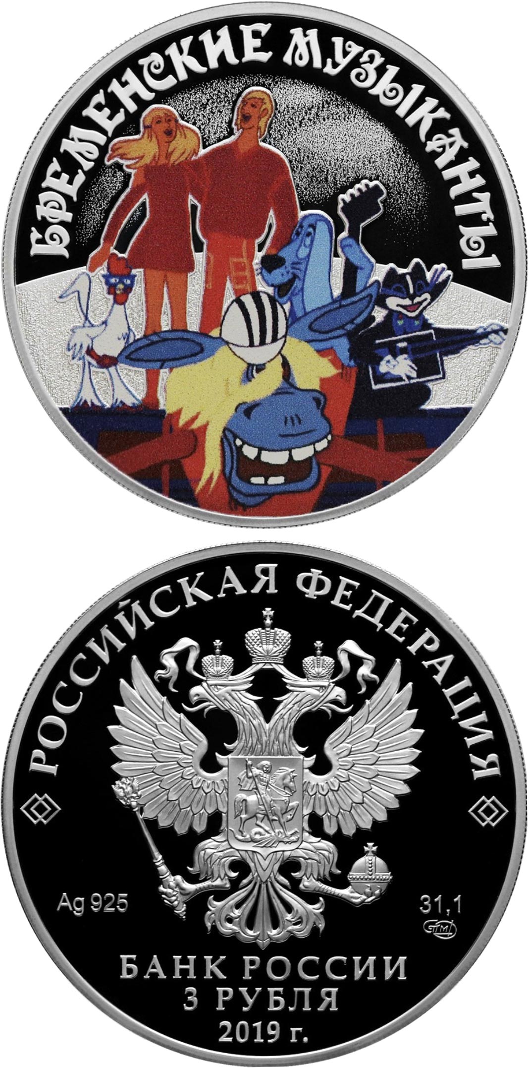 in the centre there is a relief image of the National Coat of Arms of the Russian Federation and over it a semicircular inscription along the rim: "РОССИЙСКАЯ ФЕДЕРАЦИЯ" (RUSSIAN FEDERATION) framed by doubled rhombuses on both sides, under the emblem, in three lines, there is an inscription: "БАНК РОССИИ" (BANK OF RUSSIA), the coin’s par value "25 РУБЛЕЙ" (25 RUBLES), and the year of issue "2019 г." (2019), and on the right there is a mint trade mark.