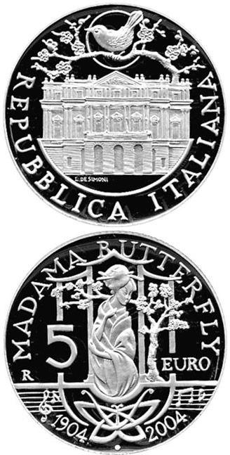 5 euro - 80. anniversary of the death of Giacomo Puccini - Madame ButterflySeries: Italy - Silver 5 euro coinsImage: Copyright © La Maison Numismatique