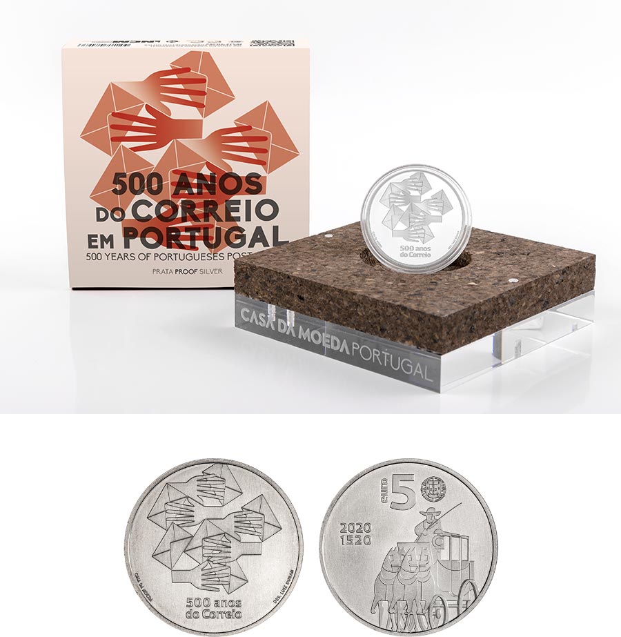 Casa da Moeda is marking the 500th anniversary of the Portuguese Post Office with a commemorative collector coin created by Luiz Duran, former Art Director of CTT (The Portuguese Post Office company) and creator of hundreds of postage stamps. The obverse of this coin features the iconic Mala Posta, a horse-drawn carriage that provided regular passenger and mail transport between Lisbon and Porto from the mid-19th century onwards.