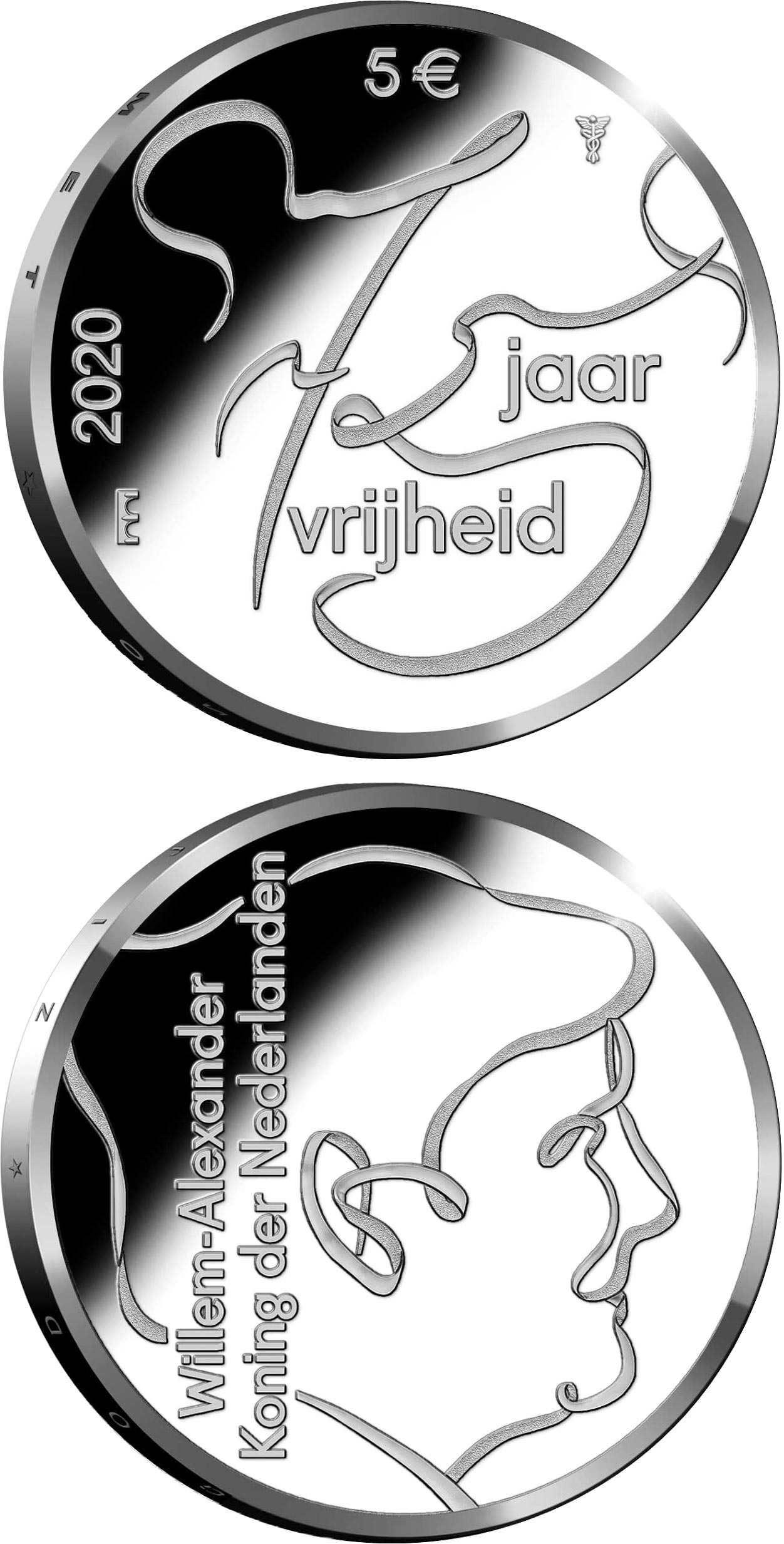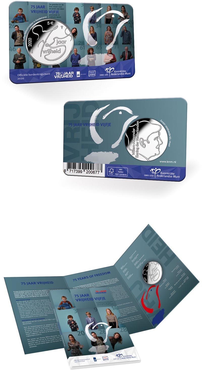 On the front we see the scratches again, but mirrored. The impact of Jaap Eden literally presses through in the present. The superimposed scratches on the shiny background form a festive, radiant background for the portrait of King Willem-Alexander. Read more about the design from the designer herself on this page: “From the designer”.