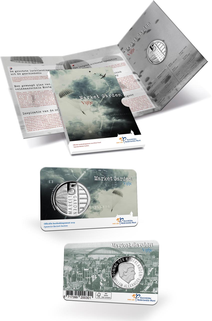 Tim Breukers is the designer of the Market Garden 5 Euro Coin. He was inspired by the Airborne Museum Hartenstein in Oosterbeek, where embroidered badges and emblems caught his attention. He applied the various stitches to the design of the commemorative coin.