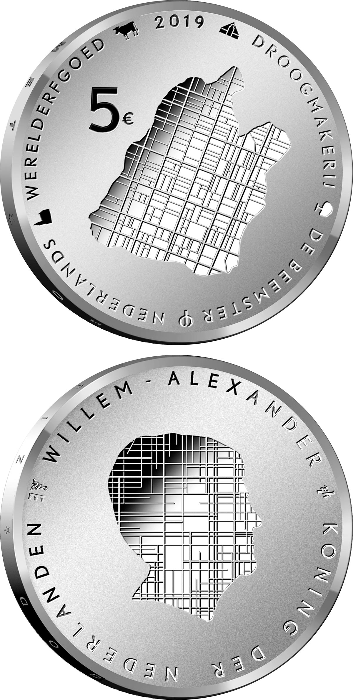 The design of the packaging features a section of the landscape of The Beemster; you can see the water being held down by the embankment. Next to the embankment, you can see a mill. Mills were used in the 17th century to help drain the lands. The image tells us that everyone in The Beemster lives and works below sea level. This unique perception is a symbol for the draining of The Beemsterlake and the importance of our Dutch embankments. If the dams break, there’s a chance your city could be under water. If you order one of the Beemster 5 Euro Coins, you will receive a free sea level map, which shows the Netherlands and the various sea levels per city. The German artist Katrin Korfmann, who lives in Amsterdam, is the designer of the Beemster 5 Euro Coin. She also signed for the Schokland 5 Euro Coin, published in 2018. In the designs of both coins, she emphasizes the contrast between the free, organic form of the natural landscape and the sleek, constructed grid of the polder landscape. The obverse of the coin shows the profile of the King, looking to the right: abstract but recognizable. Portrait, landscape, icons and letters are deeper in relation to the landscape, just like the former Beemsterlake was in relation to the surrounding old country. On the Schokland 5 Euro Coin this was exactly the other way around as a reference to the former island, which stood out above the Zuiderzee. Korfmann worked with Céline Hurka for typography.