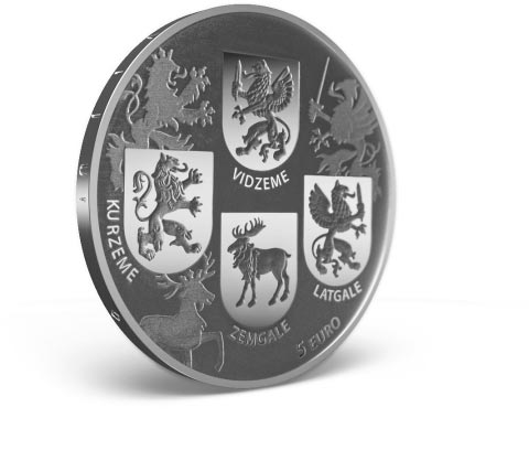 The graphic design of the collector coin "Coats of Arms Coin" was created by artist Laimonis Šēnbergs, whereas the plaster model was made by artist Jānis Strupulis. The coin was struck by UAB Lietuvos monetų kalykla (Lithuania).