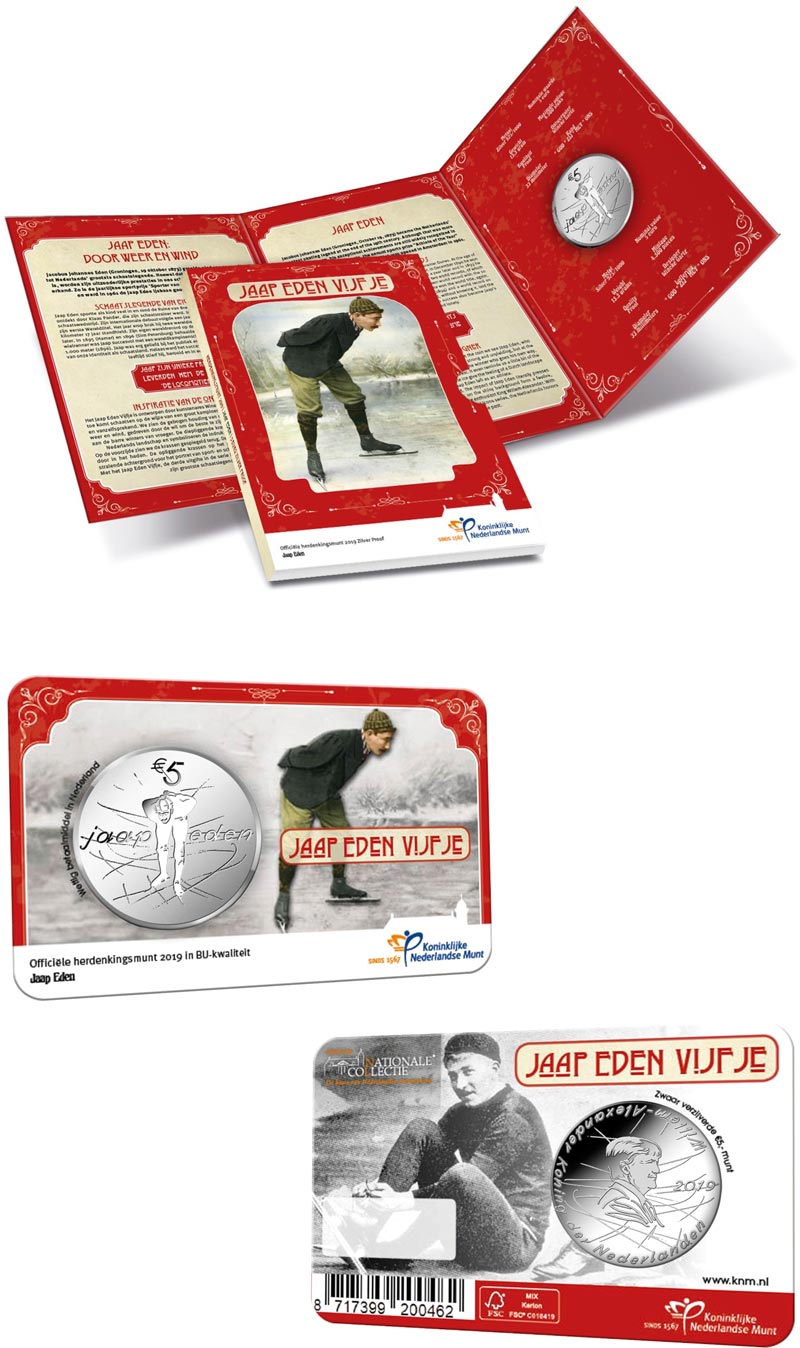 With the Jaap Eden 5 Euro Coin, the third issue in the Dutch Sport Icons series, the Netherlands honors its greatest skating legend of the past.