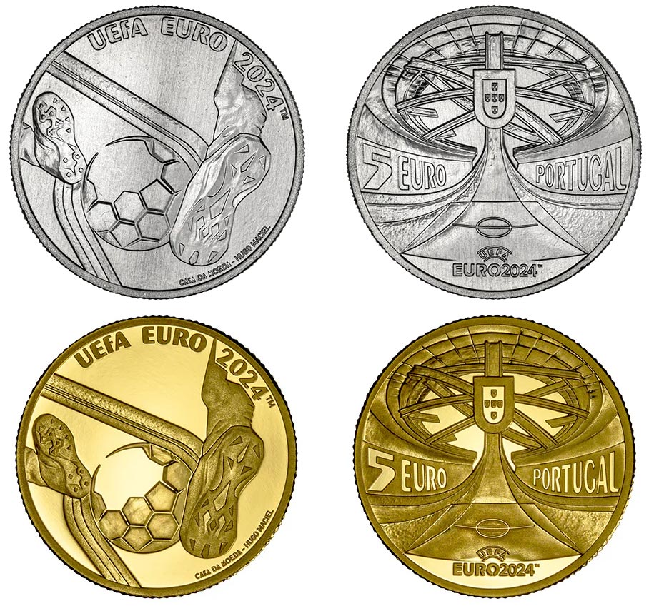The UEFA Euro 2024, hosted in Germany from June 14th to July 14th, marks the 17th edition of the male football tournament among European national teams. The tournament promises excitement with games involving 24 national teams. The Portuguese Republic issues a commemorative coin of €5.00, designed by Hugo Maciel.