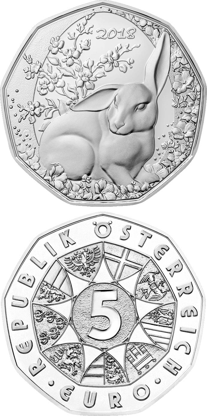 Originating in Germany during the Renaissance, the “Osterhase” (literally the Easter hare) was a folkloric figure among the followers of Martin Luther that judged whether children were behaving correctly at the beginning of Eastertide. Today the Easter Bunny is a far less judgmental creature who brings eggs for all children irrespective of their behaviour. On this Easter Coin 2018, Michael Powolny’s famous rabbit has one ear lying flat and the other raised as if eavesdropping on a conversation. This is what invests this quirky specimen with so much life and soul. The adorable creature is flanked on the coin by a forget-me-not pattern also by Augarten Porcelain Manufactory.