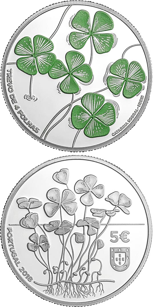 The Threatened Species series, a series of collector coins created by the Portuguese Mint with the aim of promoting knowledge and preservation of national animal and plant species that are at risk, features the issue of a coin, created by Catarina Sobral, dedicated to the Four-Leaf Clover (Marsilea quadrifolia), a semi-aquatic plant species most commonly found in riverside areas. It is currently critically endangered and in accentuated regression in Portugal due to the alteration and destruction of its habitat.