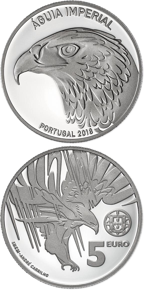The Threatened Species series, a series of collector coins created by the Portuguese Mint with the aim of promoting knowledge and preservation of national animal and plant species that are at risk, features the issue of a coin, created by André Carrilho, dedicated to the Iberian Imperial Eagle (Aquila adalberti), a rare bird of prey listed as critically endangered - there are currently only 11 breeding pairs nesting in the Portuguese territory.
