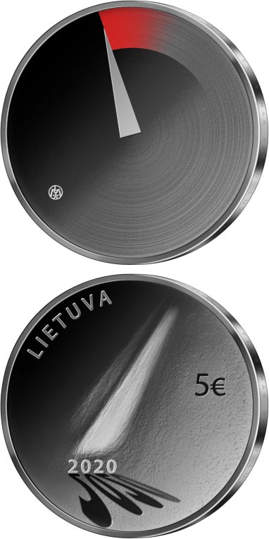 The minimalistic obverse of the coin features a pointer arrow of a measuring instrument, having reached its critical limit. This is a symbol of collision with one’s own existence – before taking a potentially fateful step, a person begins to doubt the meaningfulness of everyday choices taken while rushing through life. The obverse also features the mintmark of the Lithuanian Mint.
