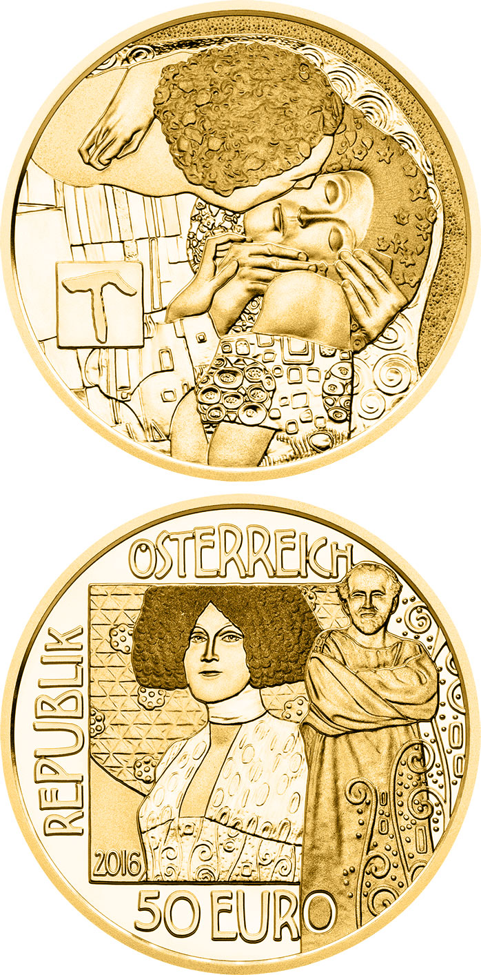 The golden glorification of the love between a man and a woman, Klimt's The Kiss is one of the world's most famous paintings. Also one of the most often reproduced, it features on the obverse of the last coin in the series. It is, however, Klimt’s painting Emilie Flöge, shown on the coin's reverse, which experts often consider his best portrait of a woman. The artist himself was of the opinion that no painting could ever convey the charm of the real Emilie, his long-term companion.