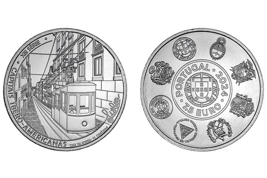 Lisbon, a thousand-year-old city facing the Atlantic, is honored on this commemorative coin of the Ibero-American Capitals series. With emphasis on the Bica Elevator on the obverse, it symbolizes the diversity and richness of the Portuguese capital. On the reverse, the armillary sphere and coats of arms of UCCI countries represent Lisbon's connection to Ibero-American cities. The coin, designed by Nuno Caetano, reflects the importance of UCCI in cooperation between cities.