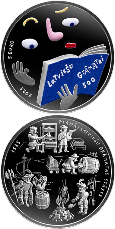 5 euro coin 500th anniversary of the first book published in Latvian | Latvia 2025