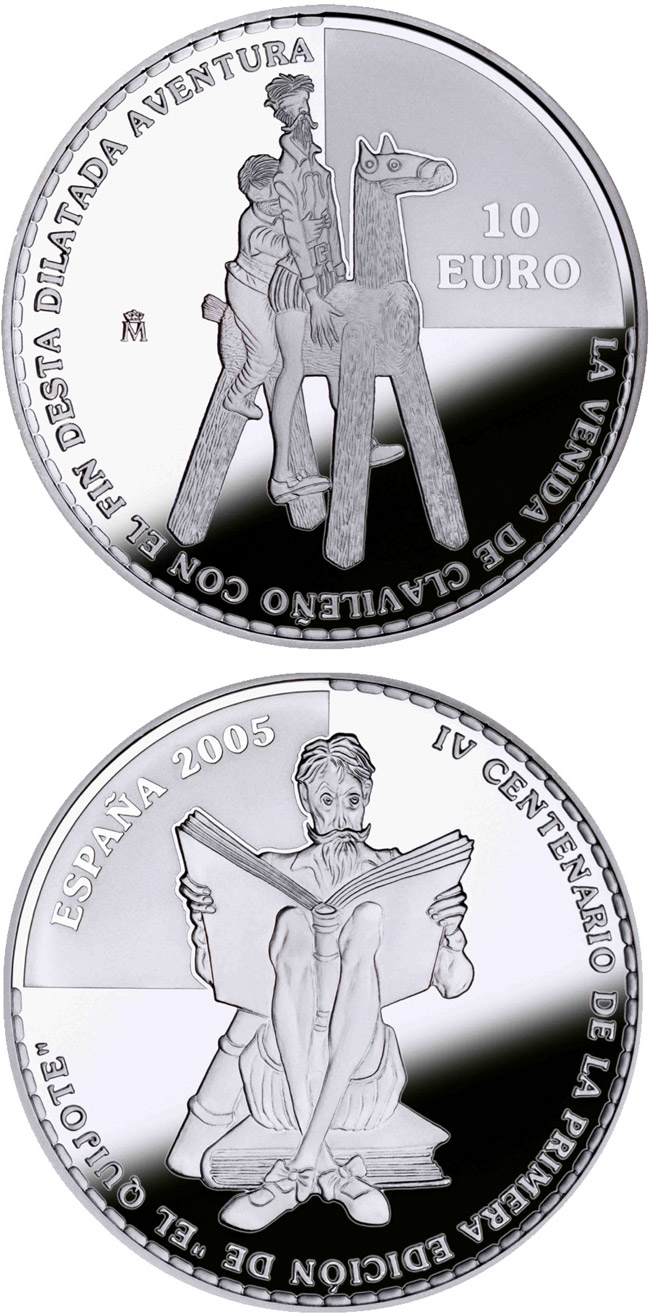 10 euro coin 4th Centenary of the publication of Don Quixote – D.Quijote and Sancho mounting Clavileño  | Spain 2005